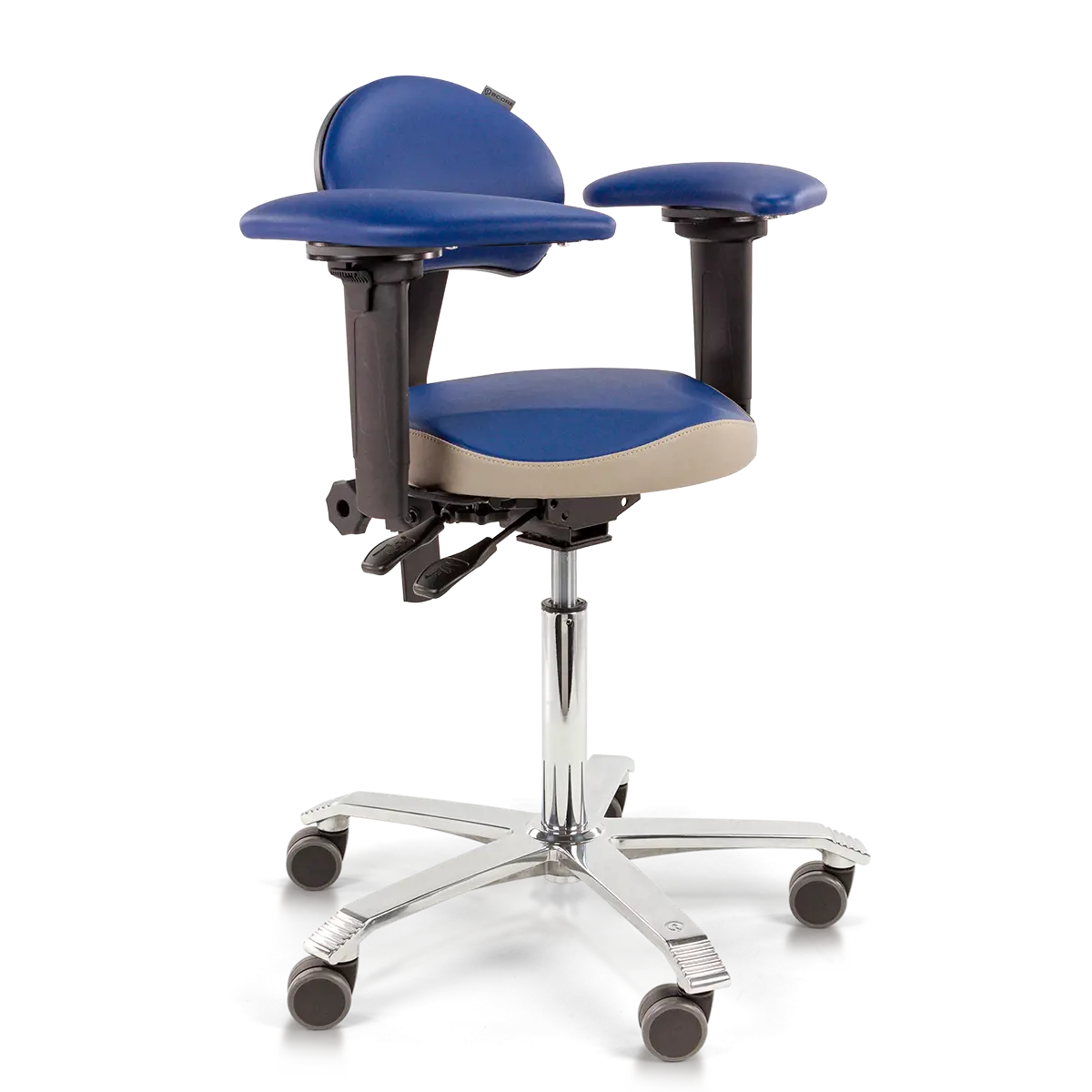 SCORE® „Ergo Support Chair“ yra specialiai sukurta oftalmologams. Tai užtikrina ergonomišką sėdėjimo padėtį ir patogią atramą ilgą laiką dirbant sėdint. Ypatingos SCORE® „Ergo Support“ kėdės savybės yra ergonomiškos formos porankiai. Juos galima priartinti prie kūno ir suteikti jūsų dilbiams optimalią atramą. Reguliuojamas porankių aukštis leidžia sėdėti vertikaliai naudojant mikroskopą ar kitą tikslią priemonę. „Ergo Support“ padeda užimti atsipalaidavusią laikyseną: palengvėja kaklas, pečiai ir nugara.